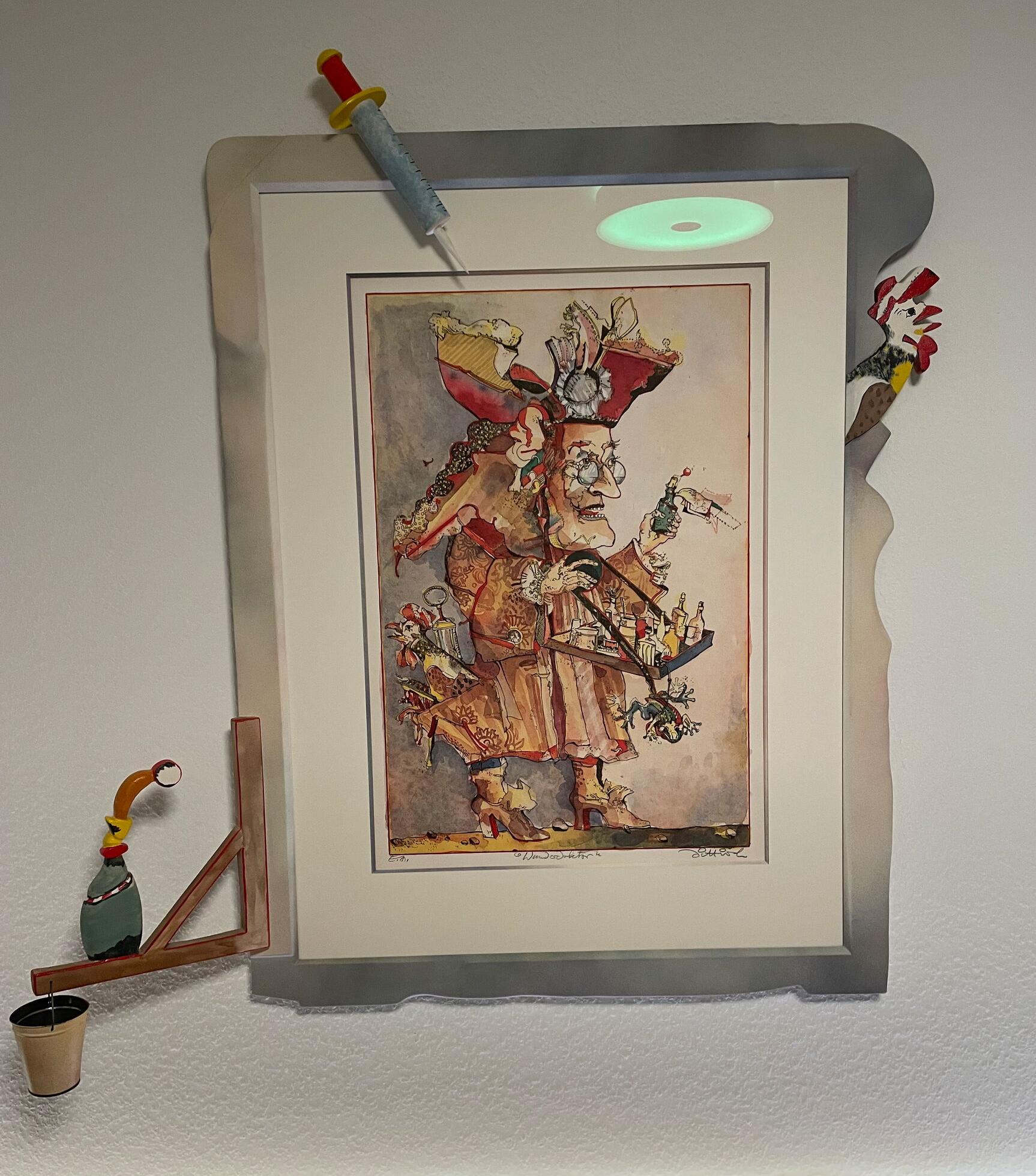 Für die Grafik „Der Wunderdoktor" von Simon Dittrich haben wir im Kundenauftrag einen einzigartigen Unikat-Holzrahmen gestalten dürfen: